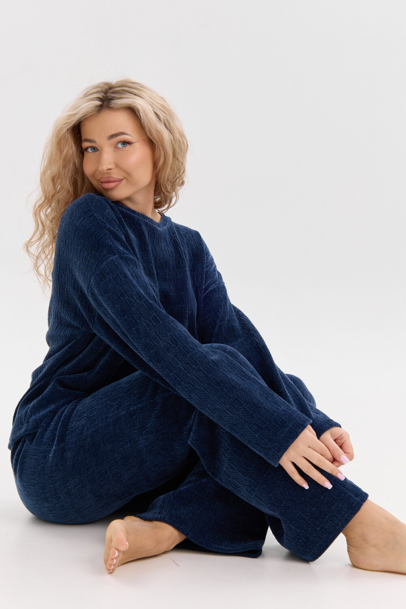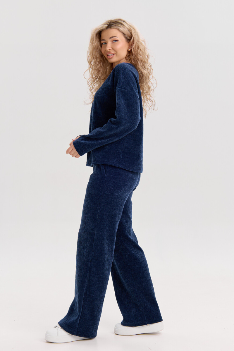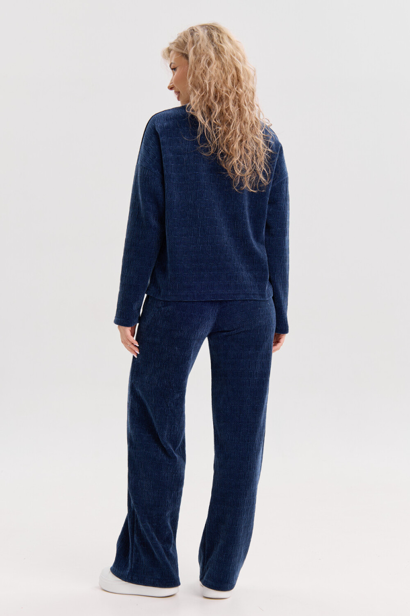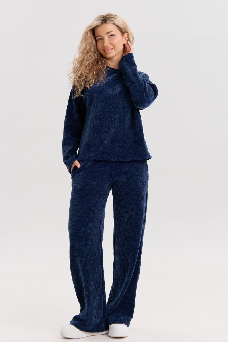 Женский костюм выполнен из жаккарда высокого качества. Жаккард - высокотехнологичный материал, прошедшей особую обработку. Ткань отличается высокими теплозащитными свойствами, при этом является дышащей. По своим характеристикам она не уступает шерстяным полотнам. И даже в сыром состоянии удерживает тепло у тела. Материал прочный, эластичный, влагостойкий. Воздухопроницаемая гигроскопичная ткань создает для тела комфортный микроклимат. Изделия из жаккарда легкие, не мнутся, не деформируются, не вытягиваються.В такой одежде удобно и комфортно. Эластичность материала позволяет легко двигаться. Костюм состоит из лонгслива и брюк. Лонг в стиле OVERSIZE ( одежда свободного кроя ) - это свобода самовыражения, позволяющая чувствовать себя комфортно и стильно одновременно. Горловина свитшота выполнена с обтачкой. Линия плеча спущена, длинный рукав. Женские стильные брюки - трубы представлены с вместительными боковыми карманами. Пояс выполнен на специализированной круговой поясной машине, что делает швы ровными и каче